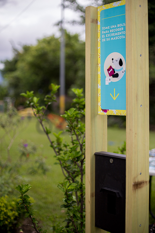 Cada vez más los parques de la ciudad son usados para pasear a las mascotas, por lo cual se hace necesario contar con un mobiliario que suministre bolsas para recolectar el excremento de estas mascotas y depositar en los contenedores de basura. Este mobiliario dentro de la Línea Pinares, está compuesto por dos elementos verticales de reglas de madera de pino tratada para intemperie, que confinan el contenedor que dispensa las bolsas y un rótulo informativo. Esta verticalidad que posee el mueble permite divisarlo a lo lejos permitiendo a los usuarios identificas fácilmente donde está el dispositivo para tomar las bolsas para excremento de su mascota.