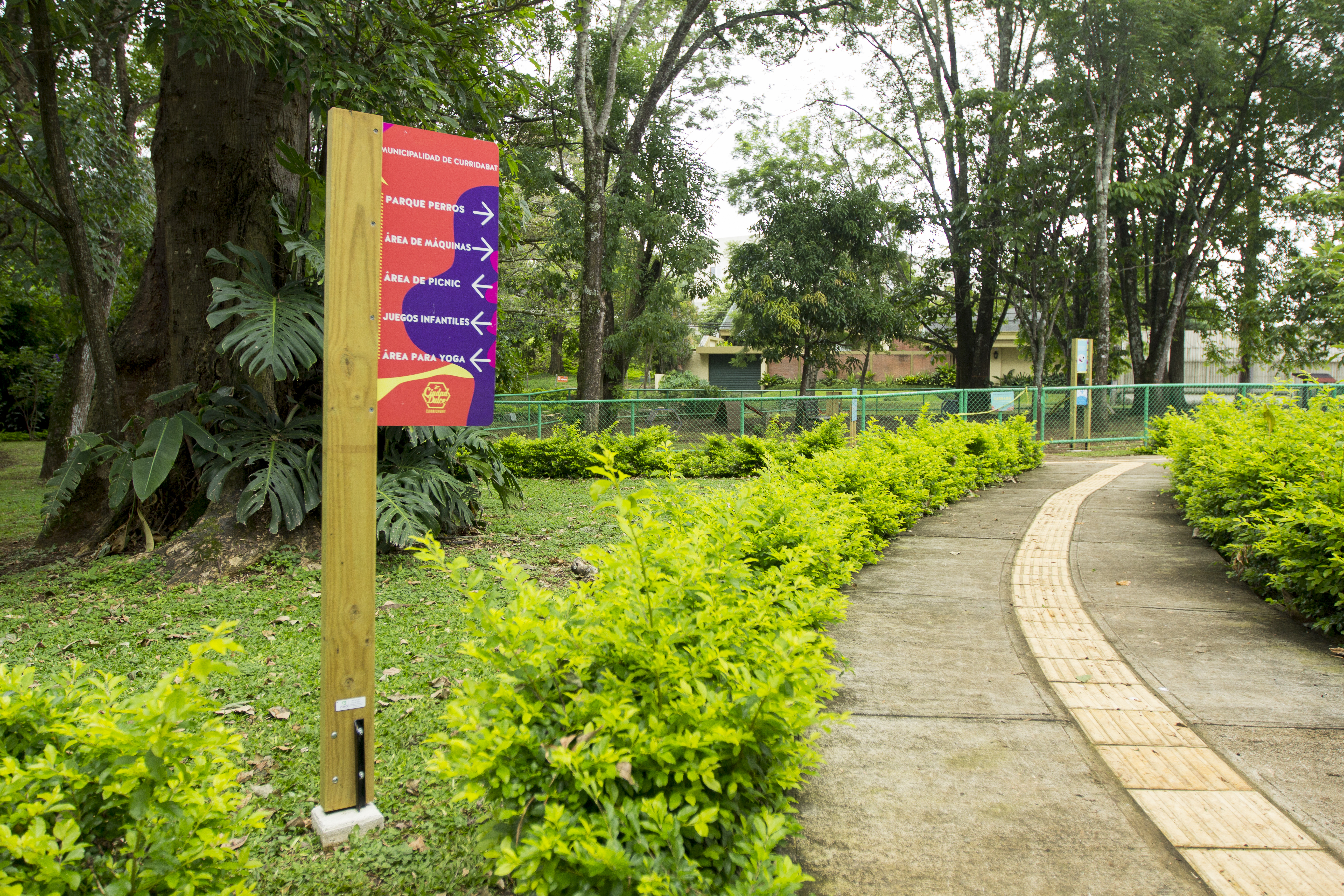 La Línea Pinares contiene una serie de rótulos para información dentro de los parques. El diseño parte de la premisa de la verticalidad, con la intensión que sea visibles a la distancia. Básicamente está compuesto por dos reglas de madera de pino radiata tratado para intemperie, que confinan una lámina de hierro galvanizado que es el soporte para la información gráfica. El diseño del arte de la gráfica puede varias según los requerimientos del cliente, siempre y cuando mantenga el área del soporte que es de 55 cm x 80 cm. El anclaje al suelo se hace mediante ángulos de hierro negro que permiten de ser necesario remover el mueble fácilmente para su mantenimiento.